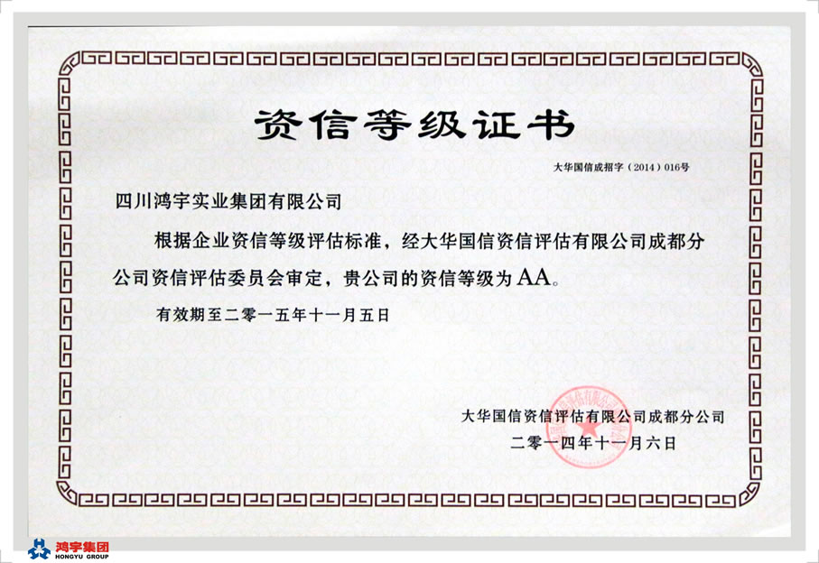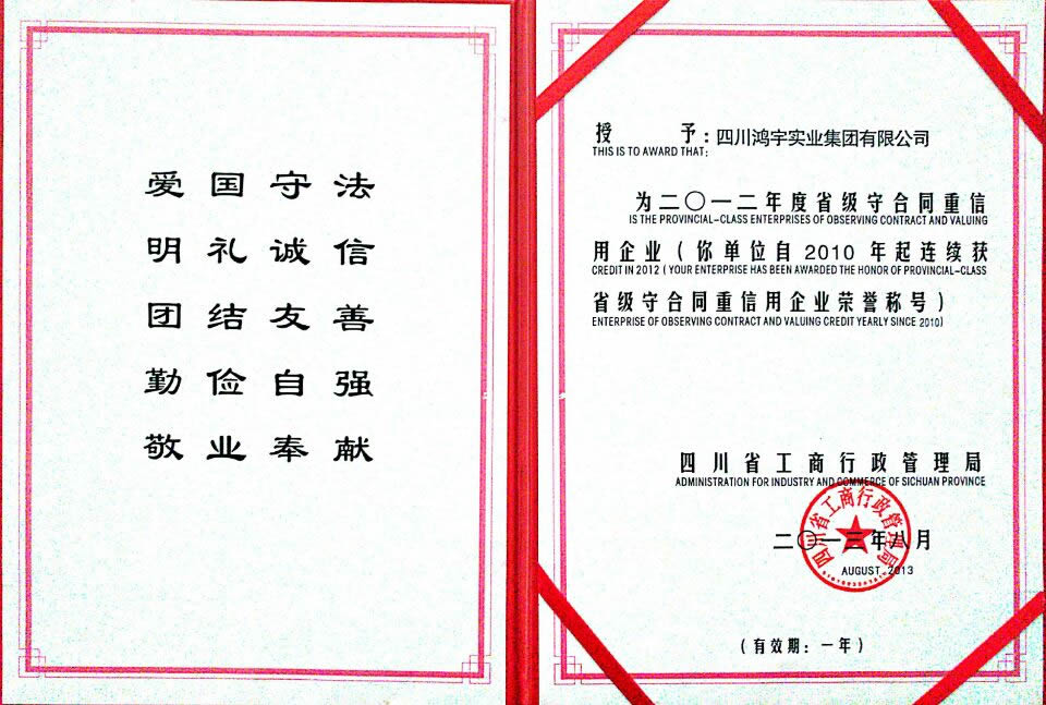 四川鸿宇实业集团有限公司始建于2002年4月,位于“中国科技城”——四川绵阳,注册资本1.2亿元。职工总数400余人,其中各类专业技术人员、中高级职称300余人。 鸿宇秉承“诚信、拓展、合作、奉献”企业精神,坚持“一业为主、多元发展、创新务实、内联外拓”的经营理念,建立了科学的管理体制和运行机制,并形成了具有鸿宇特色的管理模式和企业文化。