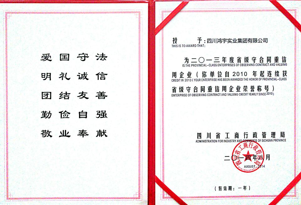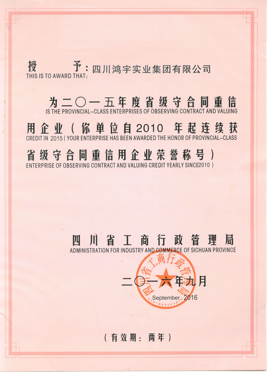 公司历年被授予“四川省首批最具成长型企业100强”称号,被中国市场监测中心评定为“中国质量 服务 信誉AAA级企业”,先后获得国家、省市评选的“诚信示范企业”、“安康杯”竞赛优胜企业、“财税入库先进企业”、“重合同守信用企业”、“绵阳市建筑施工总承包综合排名前十强”、“绵阳市建筑业服务绿卡企业”等多个奖项。